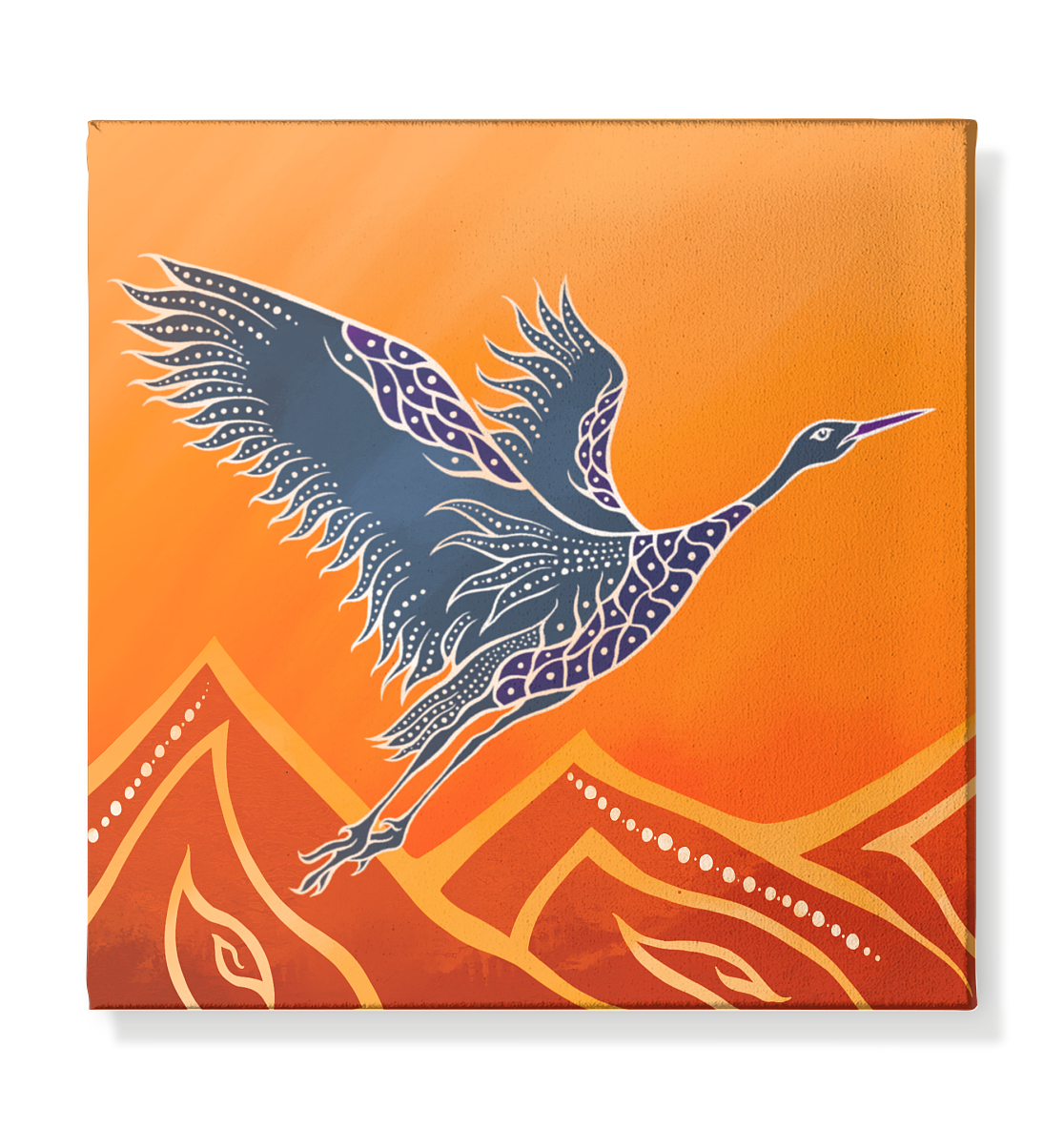 Der „Kranich Aufbruch“ fängt den Moment des ersten Flügelschlags ein und symbolisiert damit Neubeginn und Auftrieb. Die warmen Orangetöne und das feine Ornament verleihen deinem Wohn- oder Schlafzimmer bzw. deinem Studio eine ruhige, positive Ausstrahlung. Das Bild ist auf 340 g/m² Galerie-Leinwand gedruckt und auf einen 2 cm breiten FSC®-Holzkeilrahmen gespannt. Es überzeugt mit langlebigen, lichtechten Farben und matter Textur.