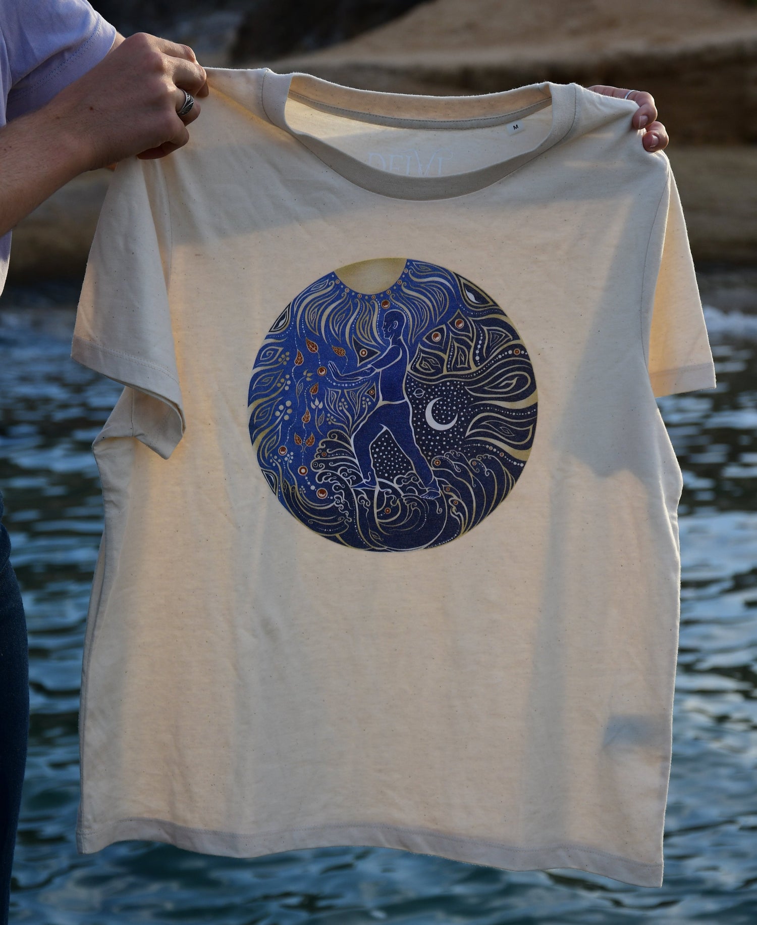 DEIVIS everyday clothing features energetic motifs, including radiant suns, gentle moon designs, chakras, delicate lotus flowers, and much more. Let yourself be inspired!